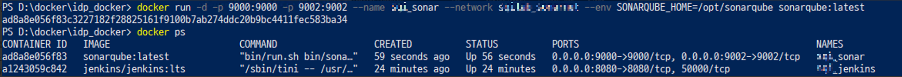 > docker run -d -p 9000:9000 -p 9002:9002 --name sonar --env SONARQUBE_HOME=/opt/sonarqube sonarqube:latest