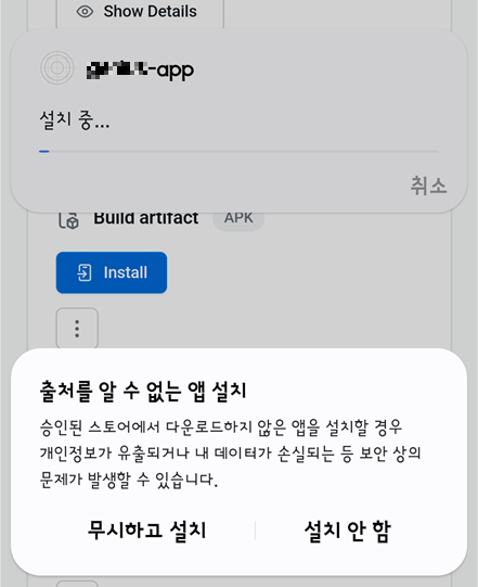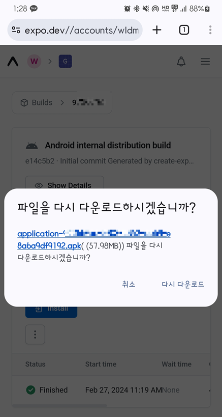 2) build 완료 시 expo.dev 사이트에서 install 클릭