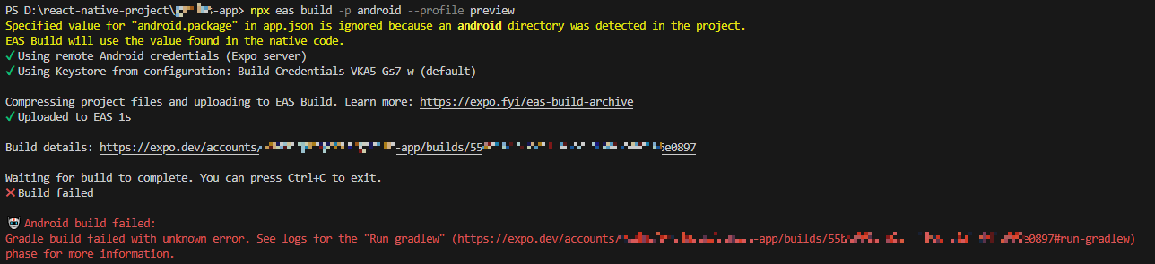 eas build -p android --profile preview