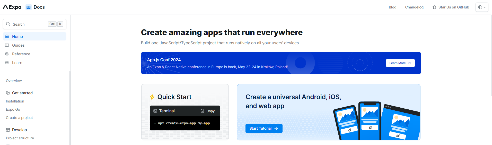 공식 문서에서도 create-expo-app 을 통해서 프로젝트를 생성하라고 권장한다.