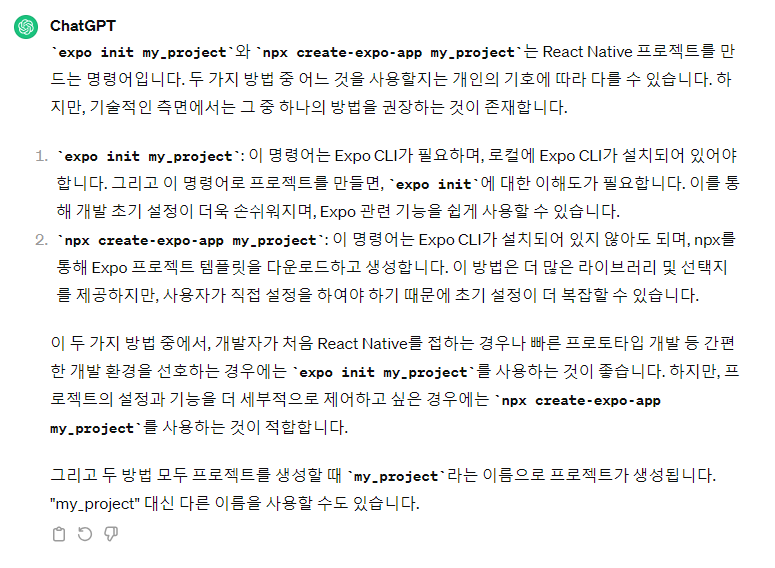 chatGPT는 expo init을 사용하라고 하지만,, 믿을 수 없다.