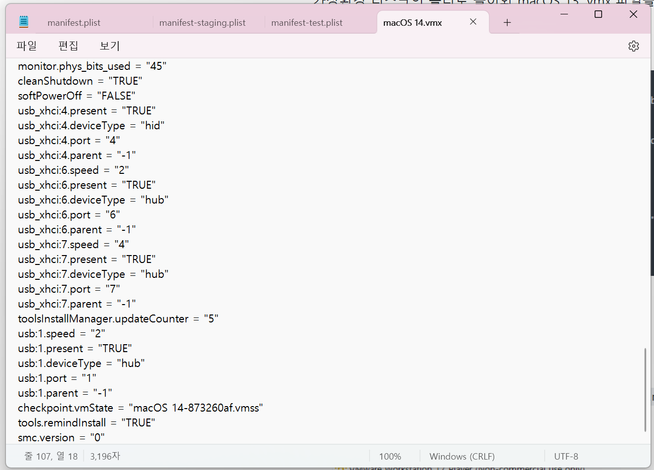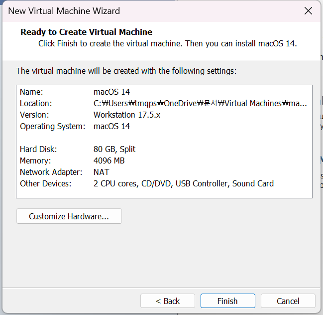 문서 > Virtual Machines > macOS > macOS.vmx