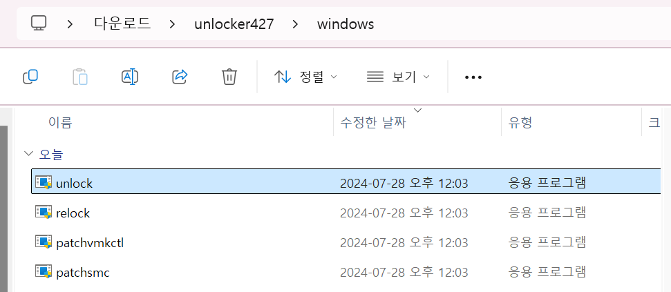 압축 풀기 -> unlock/windows/unlock 관리자 권한 실행