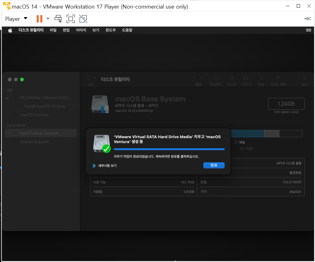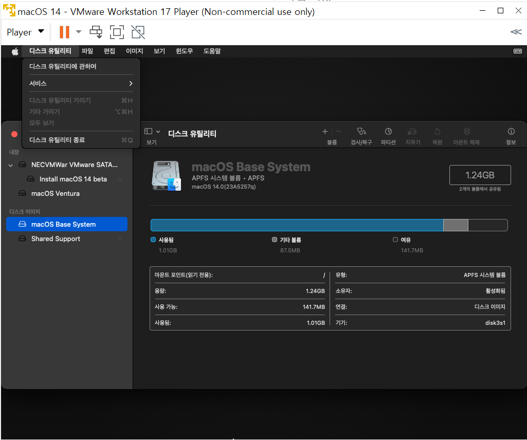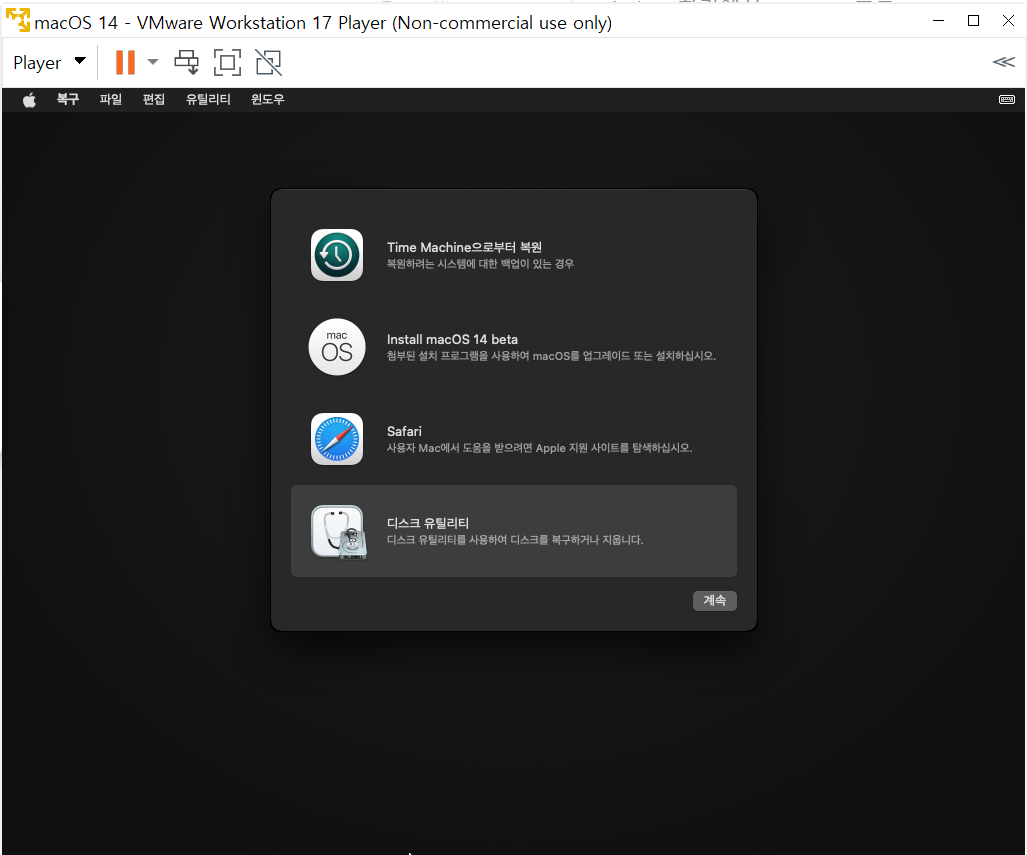 상단 디스크 유틸리티 > 디스크 유틸리티 종료