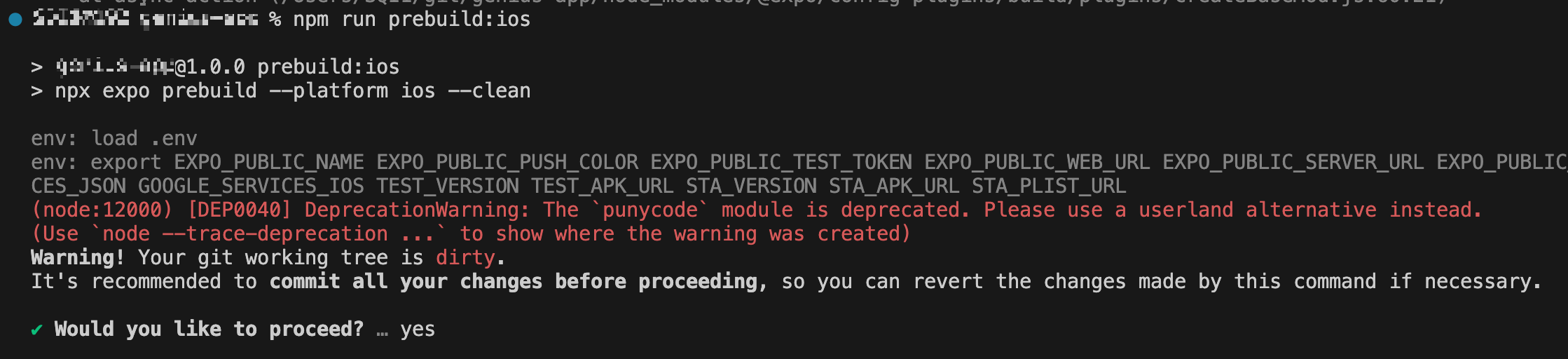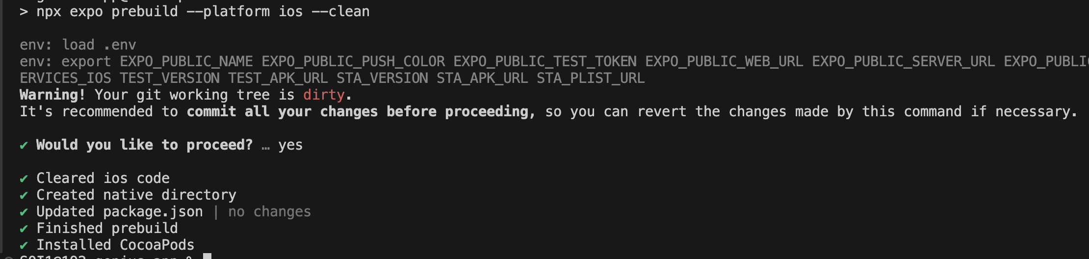 npx expo prebuild --platform ios --clean