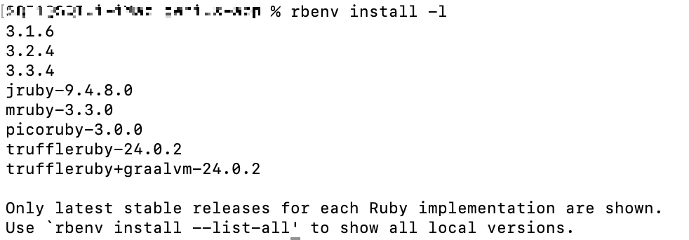 2) 설치 가능 ruby 버전 확인