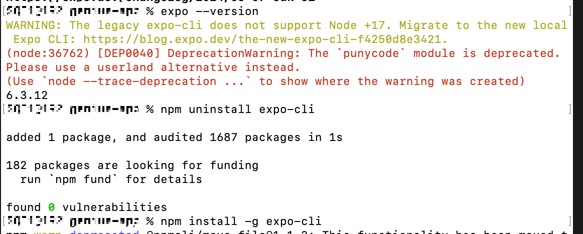 expo cli 버전이 낮다는 이슈가 있어 다시 설치