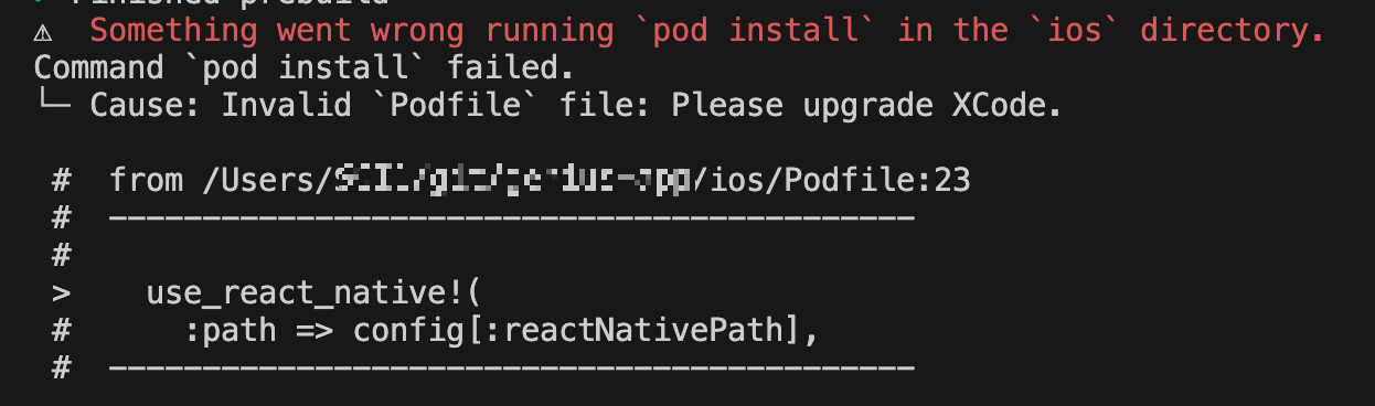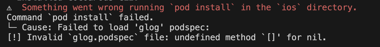 !error : Something went wrong running `pod install` in the `ios` directory.