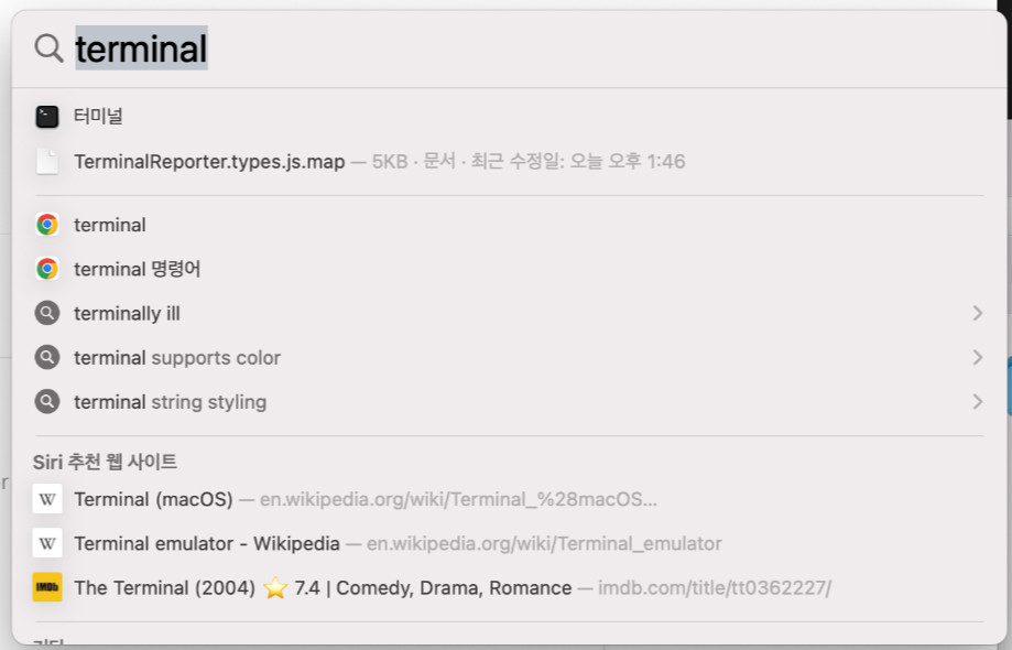 command&space (검색) > termianl.app