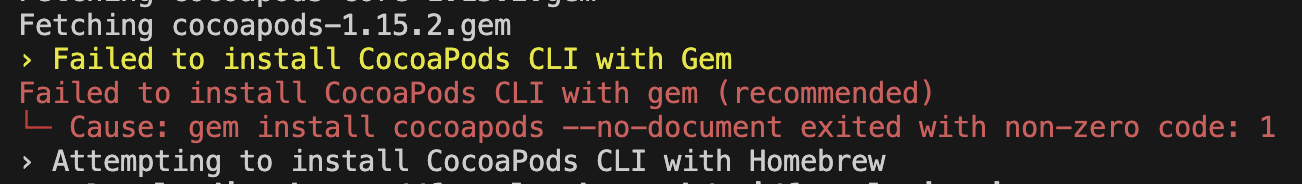 ! error : Failed to install CocoaPods CLI with gem (recommended)