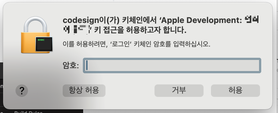 키체인 암호를 입력하라는데 모든 암호를 넣어도 안된다. 안되는게 맞다. 그냥 엔터 치면 된다.